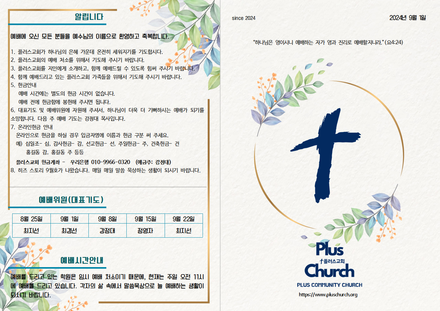 2024년 09월 01일 주일 주보